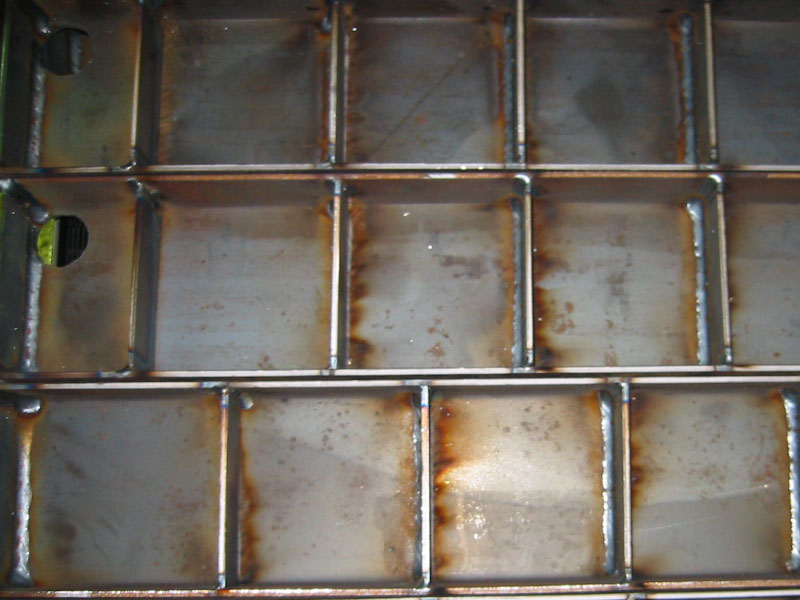 Trennbleche werden innerhalb der Bodenbleche fest verschweißt. Somit sind die Wasserwege und die optimale Leistung des Gerätes gewährleistet. Der geforderte Druckbereich ist ausschlaggebend ob die Kammern eckig oder rund profiliert werden.